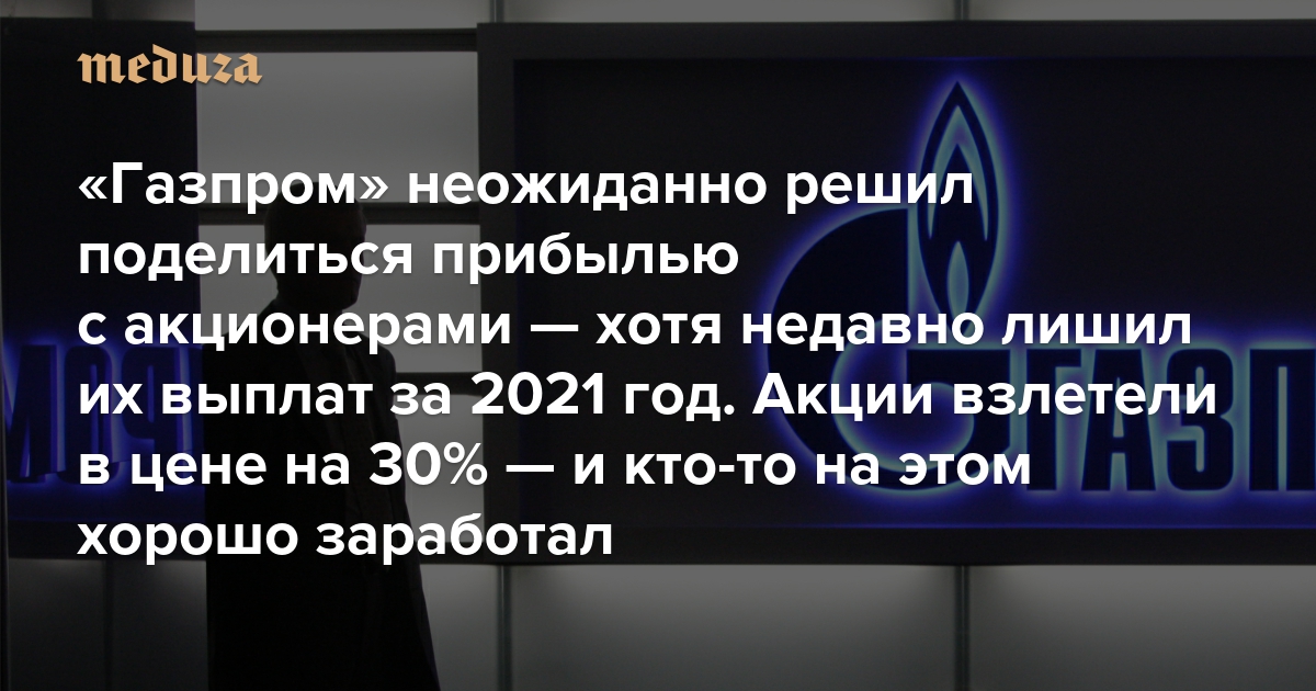 «Газпром» неожиданно решил поделиться прибылью с акционерами — хотя недавно лишил их выплат за 2021 год. Акции взлетели в цене на 30% — и кто-то на этом хорошо заработал