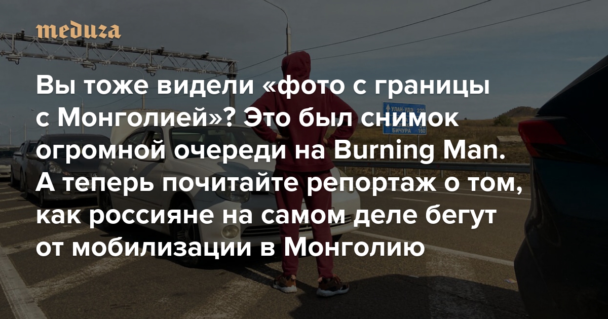 Вы тоже видели «фото с границы с Монголией»? Это был снимок огромной очереди на Burning Man А теперь почитайте репортаж о том, как россияне на самом деле бегут от мобилизации в Монголию