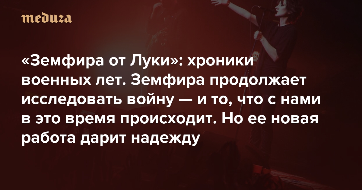 «Земфира от Луки»: хроники военных лет Земфира продолжает исследовать войну — и то, что с нами в это время происходит. Но ее новая работа дарит надежду