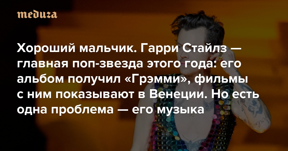 Хороший мальчик Гарри Стайлз — главная поп-звезда этого года: его последний альбом получил «Грэмми», фильмы с ним показывают в Венеции. Но есть одна проблема — его музыка
