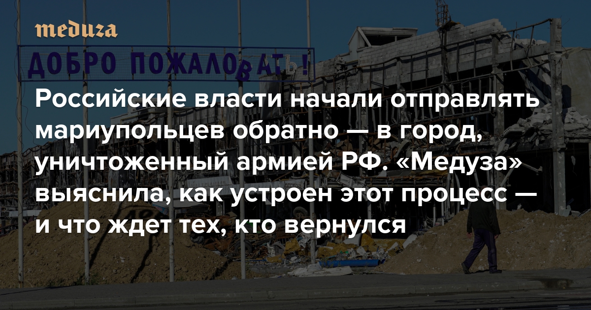 «Это люди, которых лишили и настоящего, и будущего» Российские власти начали отправлять мариупольцев обратно — в город, уничтоженный армией РФ. «Медуза» выяснила, как устроен этот процесс — и что ждет тех, кто вернулся