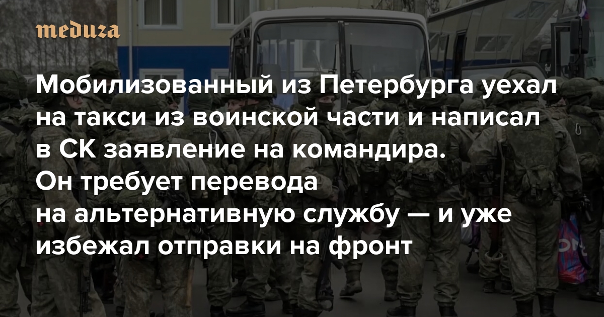 Мобилизованный из Петербурга уехал на такси из воинской части и написал в СК заявление на командира Он требует перевода на альтернативную службу — и уже избежал отправки на фронт