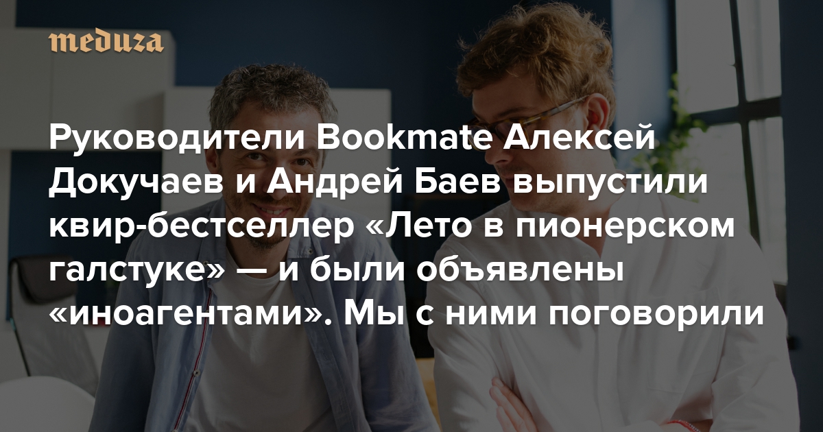 «Ну и аудиторию жалко» Руководители Bookmate Алексей Докучаев и Андрей Баев выпустили квир-бестселлер «Лето в пионерском галстуке» — и были объявлены «иноагентами». Мы с ними поговорили