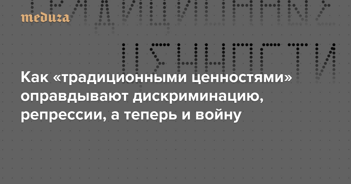Мы отобрали три «Сигнала», на которые мы чаще всего ссылались в других. Сегодня «Медуза» публикует первый из них — «Традиционные ценности».