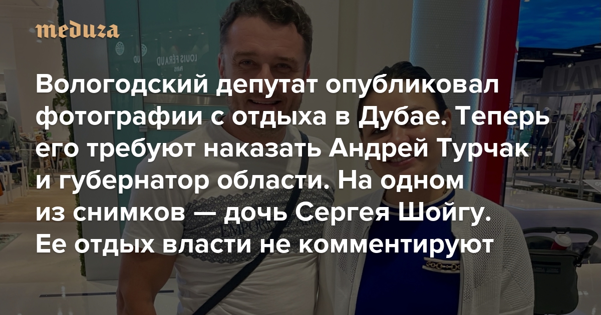 Вологодский депутат опубликовал фотографии с отдыха в Дубае. Теперь его требуют наказать Андрей Турчак и губернатор области На одном из снимков — дочь Сергея Шойгу. Ее отдых власти не комментируют