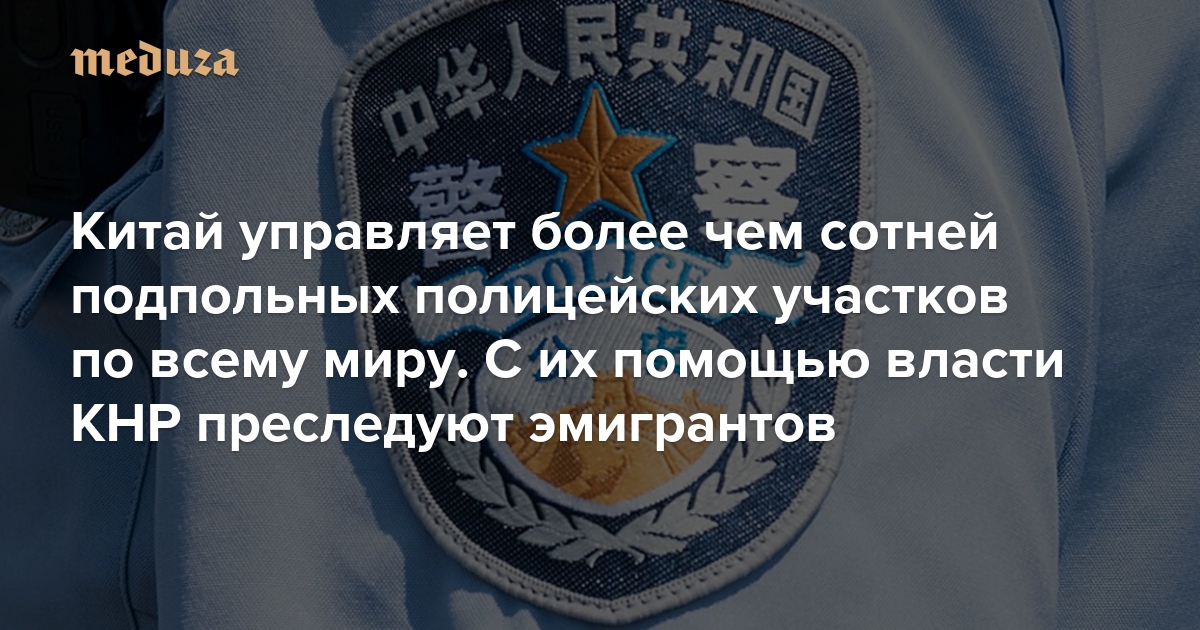 В сентябре 2022 года базирующаяся в Мадриде некоммерческая правозащитная организация Safeguard Defenders опубликовала отчет с информацией о том, что в разных странах по всему миру функционируют полицейские участки, подконтрольные китайскому правительству. Их общее количество превышает сотню, а находятся они более чем в 50 государствах на пяти континентах. Главное предназначение этих учреждений — организация контроля за диссидентами и другими гражданами Китая, покинувшими страну по политическим причинам. В некоторых случаях сотрудники полиции занимаются запугиванием и насильным возвращением китайцев на родину. Правозащитники выяснили, что участки действуют в Лондоне, Торонто, Мадриде, Риме, Барселоне, Лиссабоне, Глазго и других крупных городах. «Медуза» рассказывает главное, что известно об этих странных заведениях.