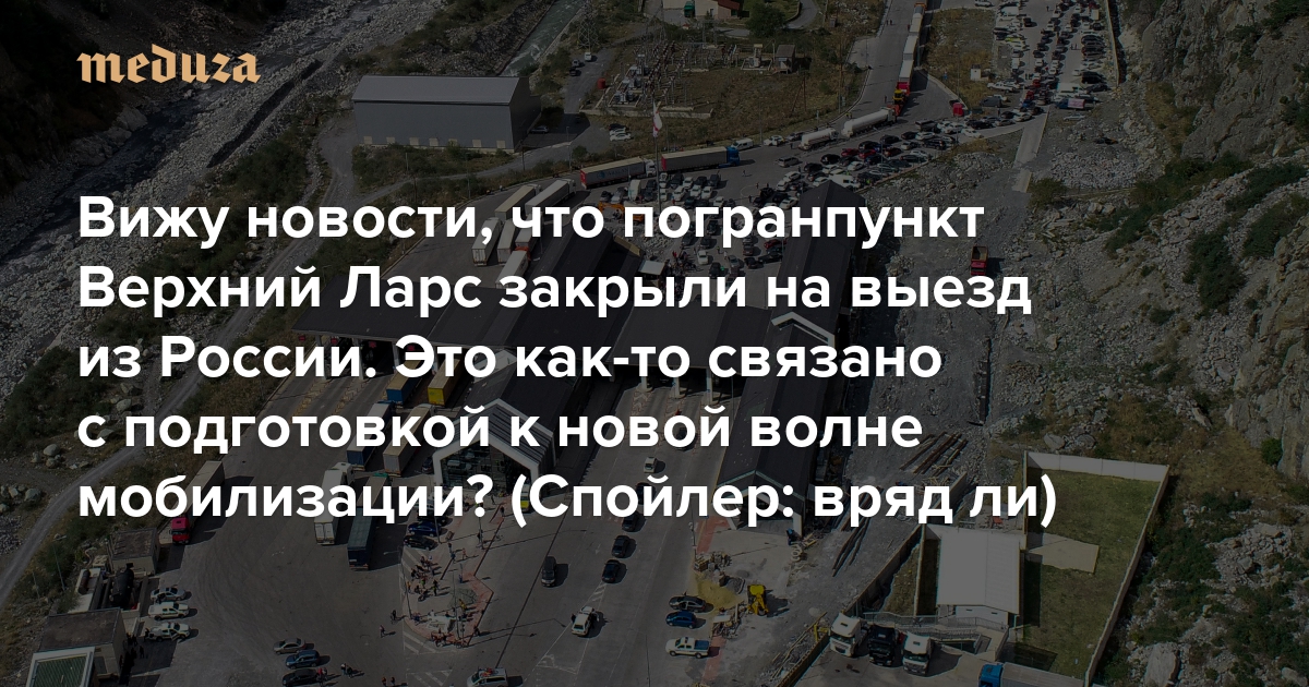 Вижу новости, что погранпункт Верхний Ларс закрыли на выезд из России. Это как-то связано с подготовкой к новой волне мобилизации? Вряд ли. Каждую зиму его по много раз закрывают из-за плохой погоды