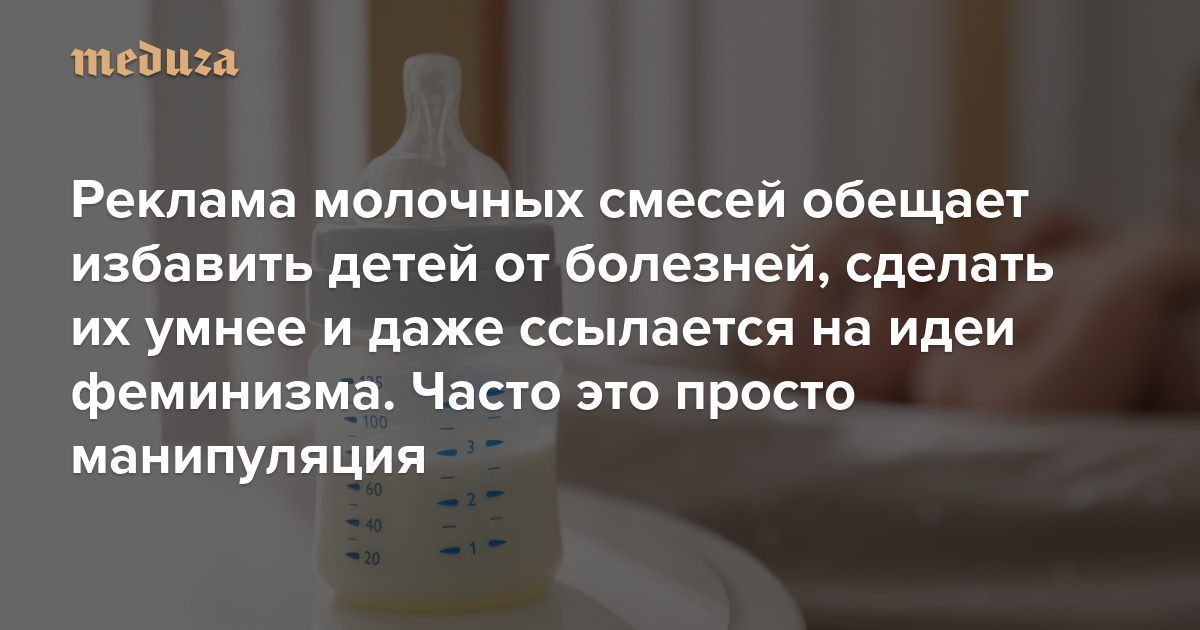 Реклама молочных смесей обещает избавить детей от болезней, сделать их умнее и даже ссылается на идеи феминизма. Часто это просто манипуляция Новые исследования показывают, как много такой рекламы в России