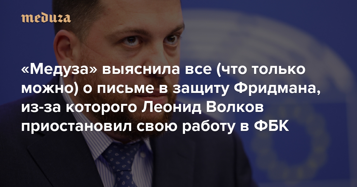 Председатель правления фонда ACF International (Фонд борьбы с коррупцией) Леонид Волков объявил, что «берет паузу в своей публичной общественно-политической деятельности» и работе в ФБК. Это произошло после того, как бывший главред «Эха Москвы» Алексей Венедиктов опубликовал коллективное письмо, адресованное Еврокомиссии, с просьбой снять санкции с российского миллиардера и совладельца «Альфа-групп» Михаила Фридмана. Сначала Волков отрицал, что подписывал этот документ, однако потом объяснил, что действительно направлял обращение в ЕС — но отдельным письмом. «Медуза» поговорила с Волковым и Венедиктовым об этих письмах, а также выяснила у источников, близких к Фридману и «Альфа-групп», как бизнесмен с помощью российских оппозиционеров пытается бороться с наложенными на него санкциями.