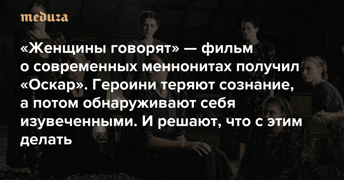 «Женщины говорят» — фильм о современных меннонитах, основанный на реальной истории. Он получил «Оскар» Героини теряют сознание, а потом обнаруживают себя изувеченными. И решают, что с этим делать