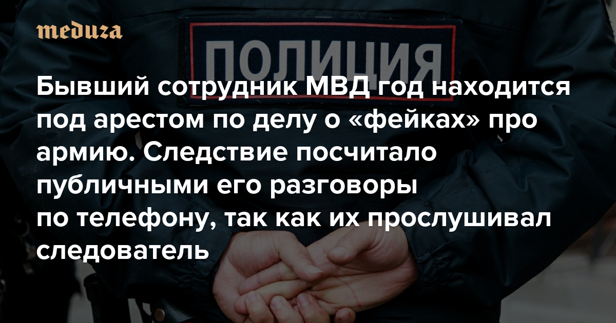 Бывший сотрудник МВД год находится под арестом по делу о «фейках» про армию. Следствие посчитало публичными его разговоры по телефону, так как их прослушивал следователь
