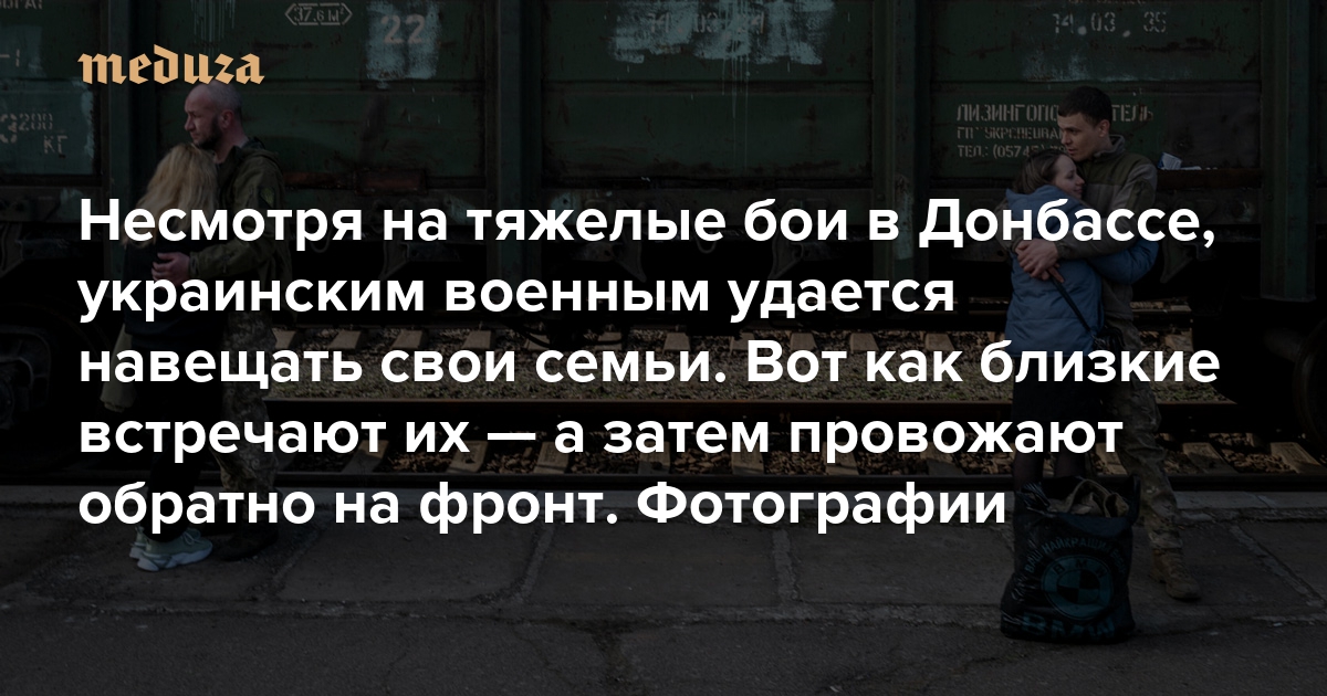 Несмотря на тяжелые бои в Донбассе, украинским военным удается навещать свои семьи. Вот как близкие встречают их — а затем провожают обратно на фронт Триста девяносто третий день войны. Фотографии