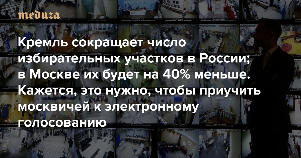 Практически неограниченные возможности по фальсификациям Кремль сокращает число избирательных участков в России; в Москве их будет на 40% меньше. Кажется, это нужно, чтобы приучить москвичей к электронному голосованию