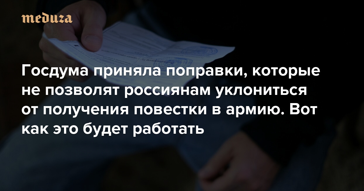 Госдума приняла поправки, которые не позволят россиянам уклониться от получения повестки в армию Всех военнообязанных внесут в реестр. Вот как это будет работать