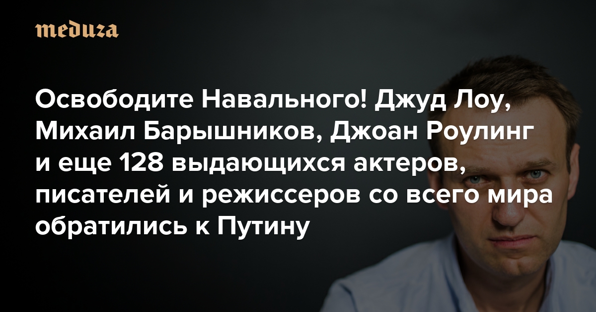 Освободите Навального! Джуд Лоу, Михаил Барышников, Джоан Роулинг и еще 128 выдающихся актеров, журналистов, писателей и режиссеров со всего мира обратились к Путину. Мы публикуем их письмо
