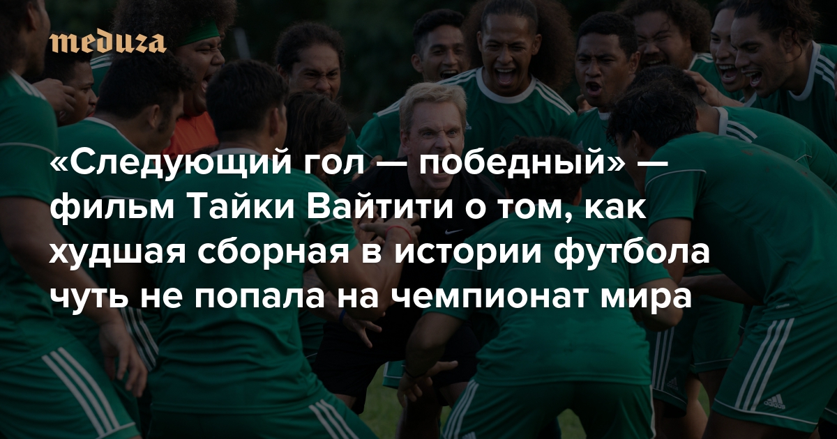 Тайка Вайтити — режиссер фильмов «Кролик Джоджо», «Реальные упыри» и «Тор: любовь и гром» — снял картину «Следующий гол — победный» с Майклом Фассбендером и Элизабет Мосс в главных ролях. Премьера должна была пройти осенью 2022 года, но из-за пересъемок ее пришлось перенести на ноябрь 2023-го. Фильм рассказывает реальную историю сборной Американского Самоа, которая на протяжении трех десятилетий была худшей в рейтинге ФИФА. Но в 2011 году ее возглавил малоизвестный американский тренер Томас Ронген с амбициозной целью — подготовить команду к чемпионату мира — 2014 в Бразилии. «Медуза» рассказывает, как Ронген изменил жизнь самоанских футболистов — и вдохновил Тайку Вайтити снять свой первый фильм о спорте.