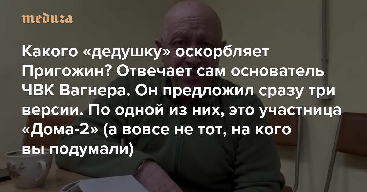 Какого «дедушку» оскорбляет Пригожин? Отвечает сам основатель ЧВК Вагнера Он предложил сразу три версии. По одной из них, это участница «Дома-2» (а вовсе не тот, на кого вы подумали)