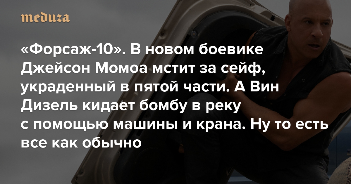 «Форсаж-10». В новом боевике Джейсон Момоа мстит за сейф, украденный в пятой части. А Вин Дизель кидает бомбу в реку с помощью машины и строительного крана Ну то есть все как обычно