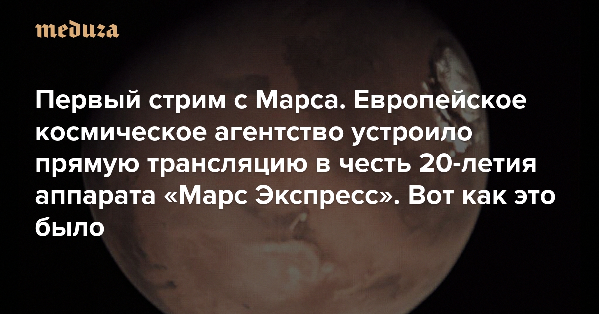 Европейское космическое агентство (ESA) в честь 20-летия марсианского орбитального аппарата «Марс Экспресс» организовало первую прямую трансляцию с орбиты этой планеты.