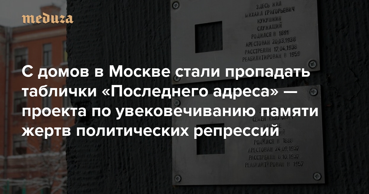 С домов в Москве стали пропадать таблички «Последнего адреса» — проекта по увековечиванию памяти жертв политических репрессий