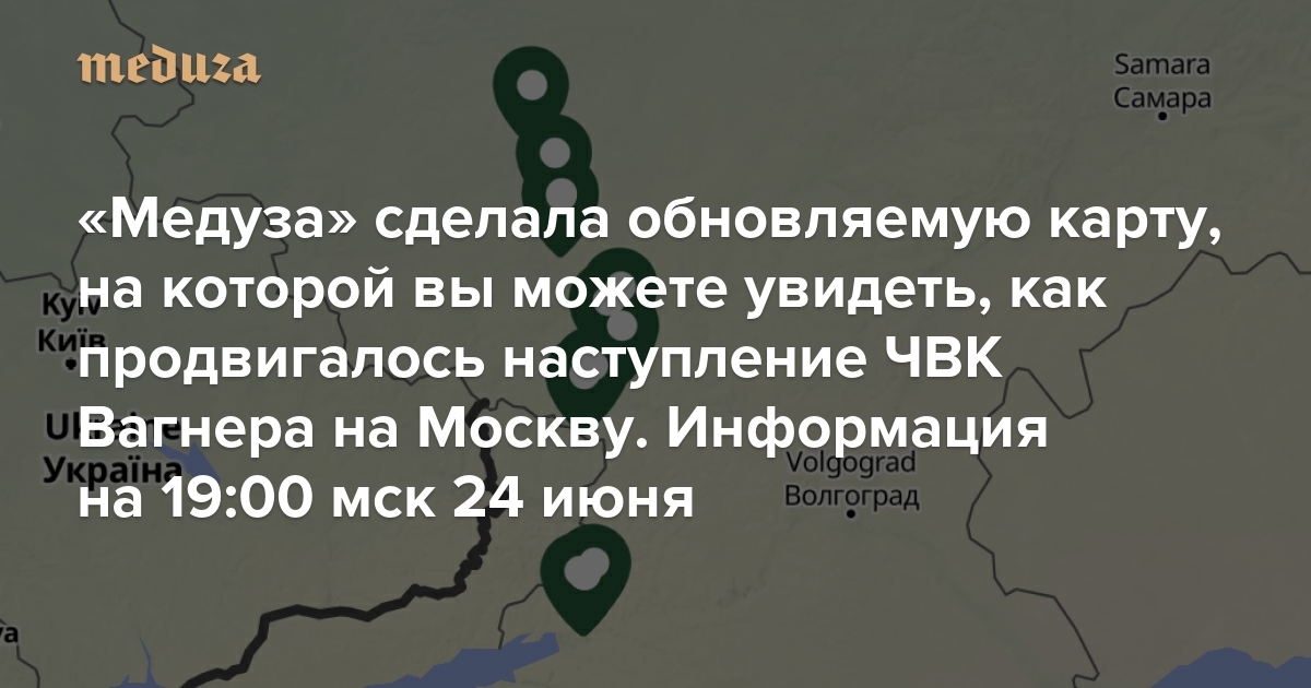 «Медуза» сделала обновляемую карту, на которой вы можете увидеть, как продвигалось наступление ЧВК Вагнера на Москву Информация на 19:00 мск 24 июня
