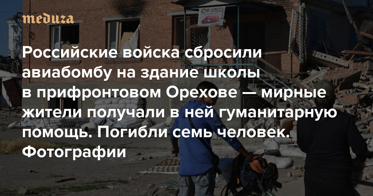 - Семь человек погибли из-за российского авиаудара по школе в прифронтовом Орехове Запорожской области, где выдавали гуманитарную помощь.