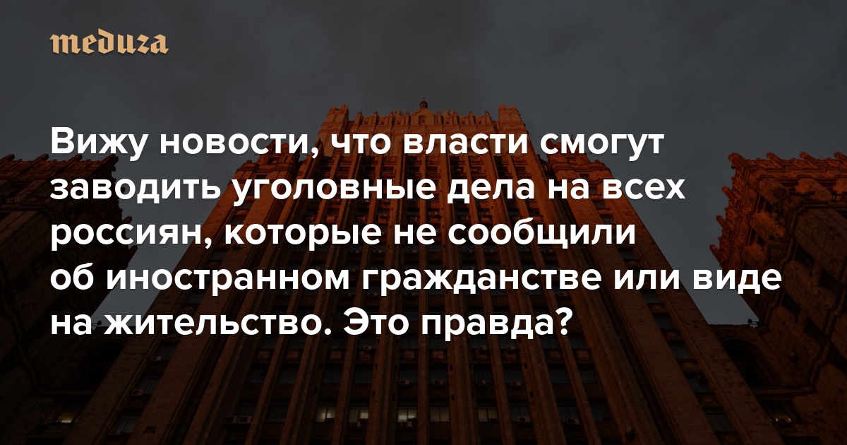 Вижу новости, что власти смогут заводить уголовные дела на всех россиян, которые не сообщили об иностранном гражданстве или виде на жительство. Это правда?