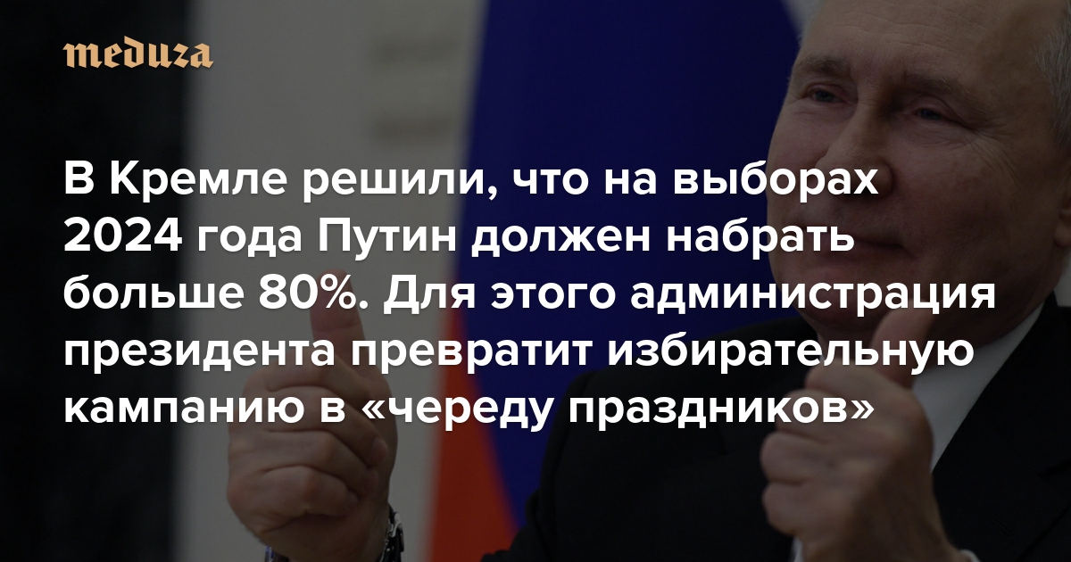 В Кремле решили, что на выборах 2024 года Путин должен набрать больше 80% Для этого администрация президента превратит избирательную кампанию в «череду праздников»