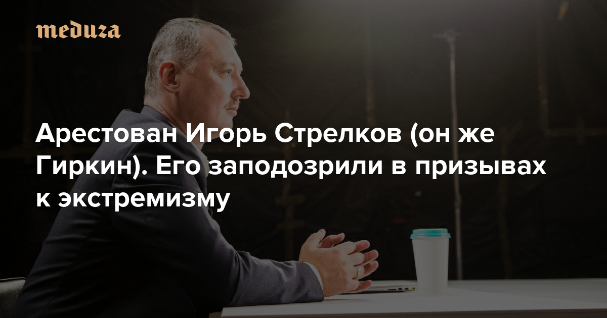 Мещанский районный суд Москвы заключил под стражу до 18 сентября бывшего офицера ФСБ России Игоря Стрелкова, участвовавшего в конфликте в Донбассе в 2014 году. Российское следствие обвиняет Стрелкова в публичных призывах к осуществлению экстремистской деятельности в интернете (часть 2 статьи 280 УК; лишение свободы на срок до пяти лет), следует из карточки дела на сайте суда (там он представлен под своей настоящей фамилией Гиркин). Следствие настаивало на аресте, поскольку Стрелков обладает «навыками конспирации» и может скрыться. Сам Стрелков просил отправить его под домашний арест, сославшись на состояние здоровья. «Заявление следователя о том, что я могу скрыться за границу откровенно смешно, я нахожусь в большинстве стран мира в розыске Интерпола», — заявил он на судебном заседании (цитата по «Медиазоне»). Согласно материалам дела, Стрелков не признал вину и со следствием не сотрудничает, пишет «Интерфакс».