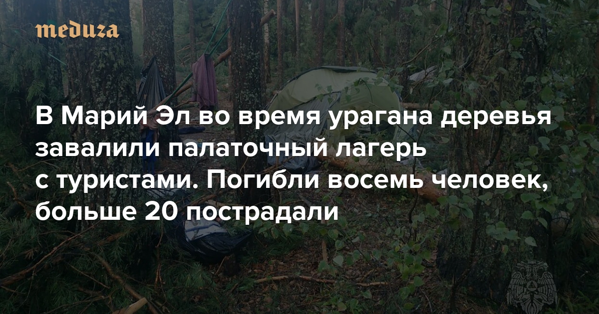 В Марий Эл во время урагана деревья завалили палаточный лагерь с туристами. Погибли восемь человек, больше 20 пострадали