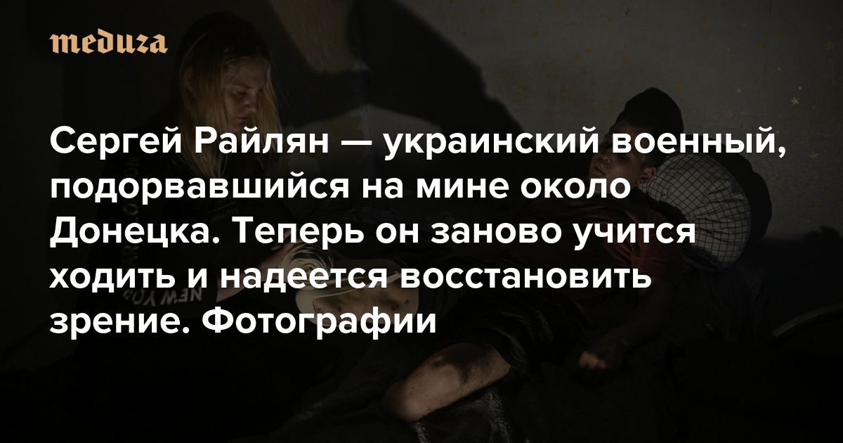 Украинский военнослужащий Сергей Райлян, командир минометно-артиллерийской группы 79-й десантно-штурмовой бригады, в 2022 году лишился зрения и ног во время подрыва автомобиля на противотанковой мине под городом Марьинкой в Донецкой области. Он несколько месяцев проходил реабилитацию, а теперь восстанавливается дома. Райлян готовится к протезированию, заново учится ходить и надеется восстановить часть зрения.