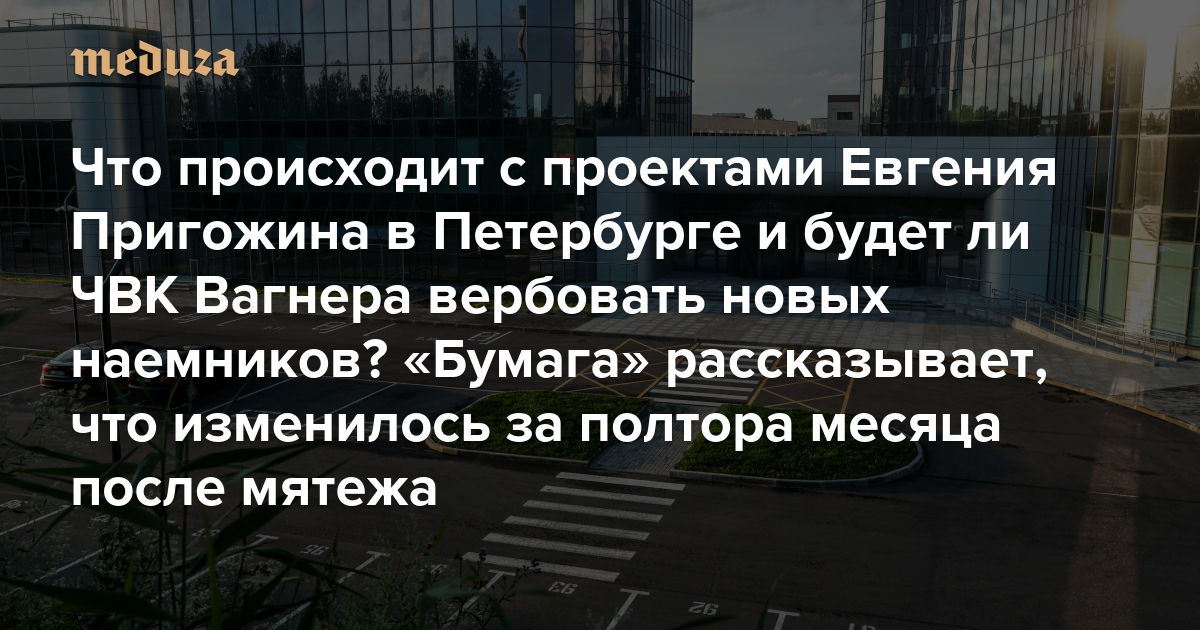Что происходит с проектами Евгения Пригожина в Петербурге и будет ли ЧВК Вагнера вербовать новых наемников «Бумага» рассказывает, что изменилось за полтора месяца после мятежа