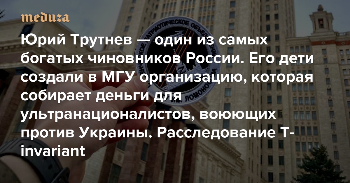 Юрий Трутнев — один из самых богатых чиновников России. Его дети создали в МГУ организацию, которая собирает деньги для ультранационалистов, воюющих против Украины Расследование проекта T-invariant