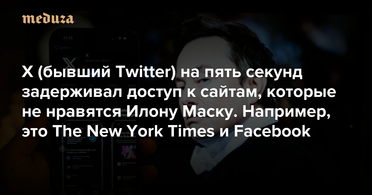X (бывший Twitter) на пять секунд задерживал доступ к сайтам, которые не нравятся Илону Маску. Например, это The New York Times и Facebook