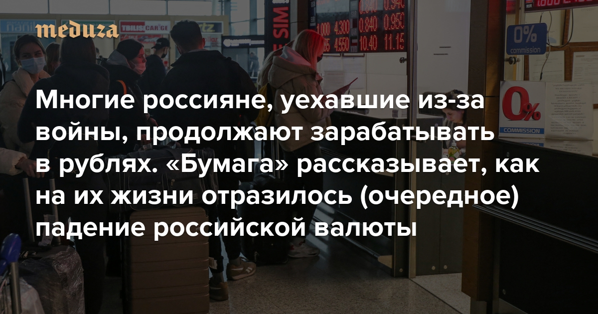 «Пока мой план: паниковать и занять денег» Многие россияне, уехавшие из-за войны, продолжают зарабатывать в рублях. «Бумага» рассказывает, как на их жизни отразилось (очередное) падение российской валюты