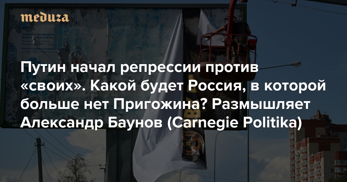 Еще несколько месяцев назад, до похода ЧВК Вагнера на Москву, Владимир Путин не решался репрессировать представителей «партии войны», которые так же, как сам президент России, используют «патриотическую» риторику, но в чем-то не согласны с ним тактически. С арестом Игоря Стрелкова, отставкой (как минимум) Сергея Суровикина и вот теперь — с уничтожением самолета Евгения Пригожина — это табу снято. Отмена и демократических, и правовых декораций в стране, вероятно, продолжится после нынешнего избирательного цикла, по итогам которого может окончательно оформиться новый образ российского политического строя. Каким он будет, в статье для проекта Carnegie Politika рассуждает старший научный сотрудник Фонда Карнеги за международный мир Александр Баунов. С любезного разрешения Carnegie Politika «Медуза» публикует эту статью целиком.