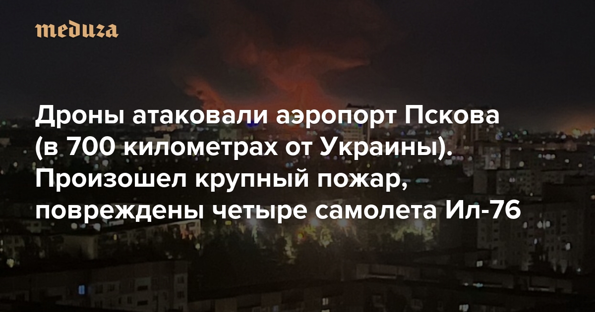 Дроны атаковали аэропорт Пскова (в 700 километрах от Украины). Произошел сильный пожар, повреждены четыре самолета Ил-76