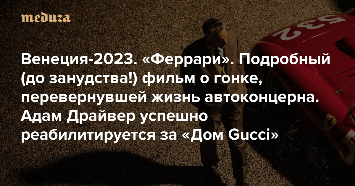 Венеция-2023. «Феррари» Подробный (до занудства!) фильм о гонке, перевернувшей жизнь автоконцерна. Адам Драйвер успешно реабилитируется за «Дом Gucci»