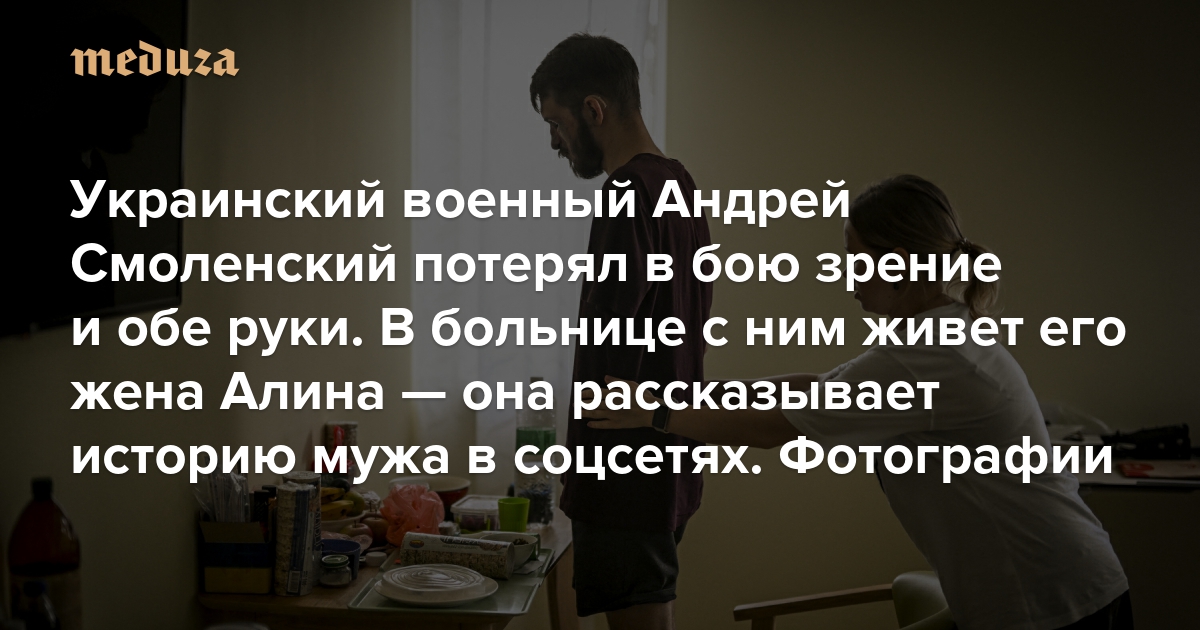 Украинский военный Андрей Смоленский потерял в бою зрение и обе руки. В больнице с ним живет его жена Алина — она рассказывает историю мужа в соцсетях Пятьсот пятьдесят восьмой день войны. Фотографии