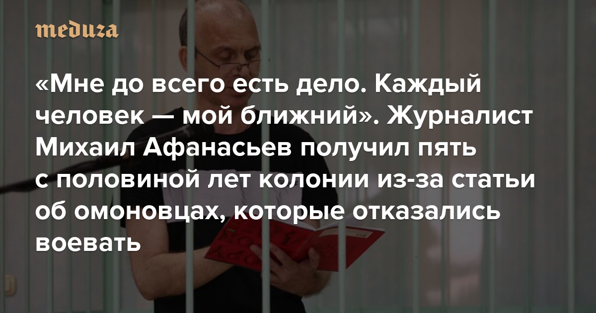 «Мне до всего есть дело. Каждый человек — мой ближний» Журналист Михаил Афанасьев получил пять с половиной лет колонии из-за статьи об омоновцах, которые отказались воевать