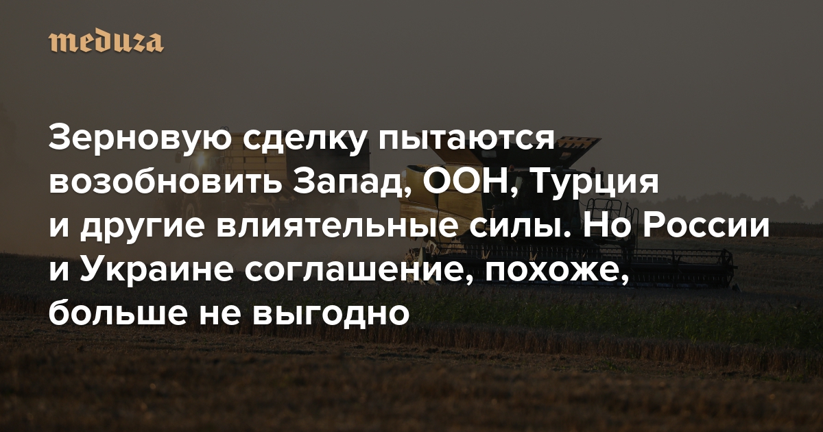 Зерновую сделку пытаются возобновить Запад, ООН, Турция и другие влиятельные силы. Но России и Украине соглашение, похоже, больше не выгодно О том, что теперь ждет рынок зерна, — в материале Carnegie Politika