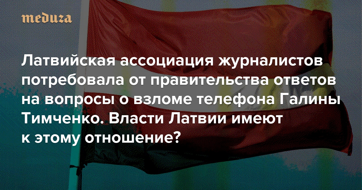 Латвийская ассоциация журналистов (LŽA) направила властям страны запрос о предоставлении информации в связи с заражением телефона издателя и соосновательницы «Медузы» Галины Тимченко шпионской программой Pegasus. Запрос адресован главе МВД Рихарду Козловскису — с копиями главе Службы государственной безопасности Нормунду Межвиетсу, Совету национальной безопасности и членам комиссии сейма по национальной безопасности. «Медуза» публикует полный перевод этого документа.