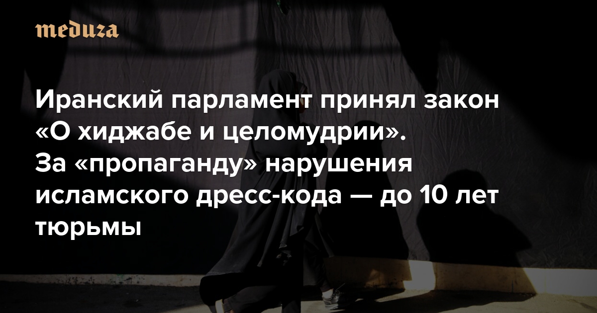 Иранский парламент принял закон «О хиджабе и целомудрии» За «пропаганду» нарушения исламского дресс-кода — до 10 лет тюрьмы