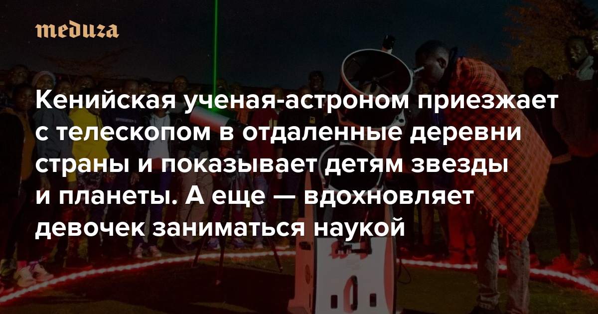 Кенийка Сьюзан Мурабана посвятила жизнь наблюдению за космосом. Вместе с мужем она отправляется в отдаленные регионы страны и рассказывает о небесных телах местным детям. Мурабана хочет заинтересовать молодое поколение наукой и профессией, которая в Кении до сих пор считается экзотической, особенно среди женщин. «Медуза» пересказывает материал The Guardian о том, как Сьюзан Мурабана пытается вдохновить соотечественников.