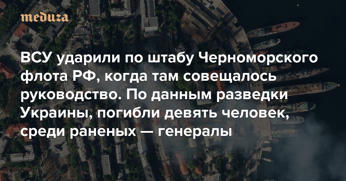 ВСУ ударили ракетами Storm Shadow по штабу Черноморского флота РФ, когда там совещалось руководство. По данным разведки Украины, погибли девять человек, среди раненых — генералы Что известно об атаке спустя сутки