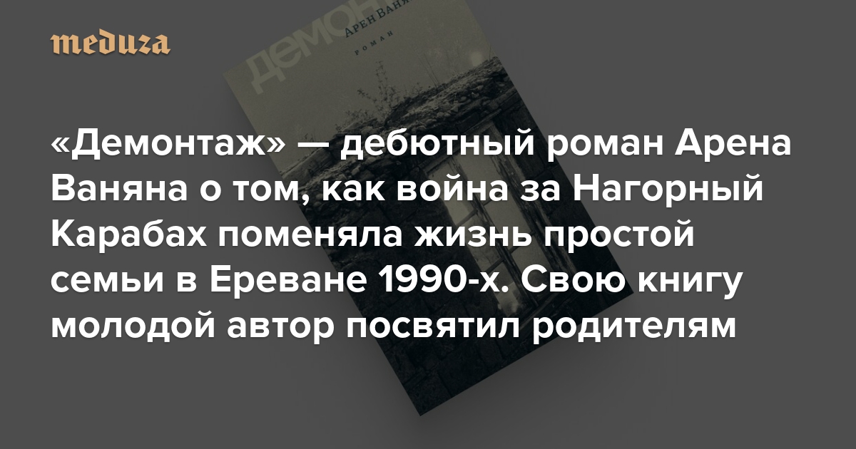 «Демонтаж» — дебютный роман Арена Ваняна о том, как война за Нагорный Карабах поменяла жизнь простой семьи в Ереване 1990-х Свою книгу молодой автор посвятил родителям