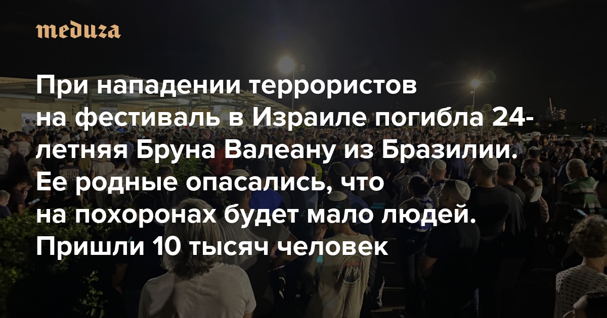 При нападении террористов на фестиваль в Израиле погибла 24-летняя Бруна Валеану из Бразилии. Ее родные опасались, что на похоронах будет мало людей. Пришли 10 тысяч человек