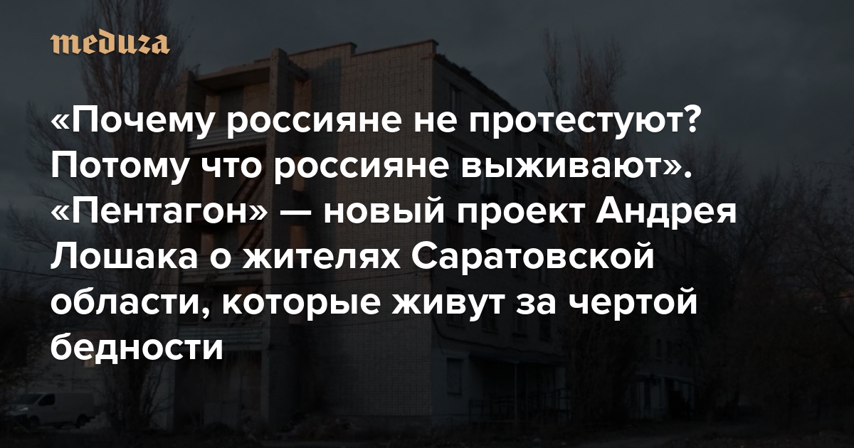 «Почему россияне не протестуют? Потому что россияне выживают» «Пентагон» — новый проект Андрея Лошака о жителях Саратовской области, которые живут за чертой бедности