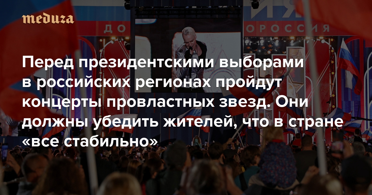 «Правильные исполнители с правильным патриотическим посылом» Перед президентскими выборами в российских регионах пройдут концерты провластных звезд. Они должны убедить жителей, что в стране «все стабильно»