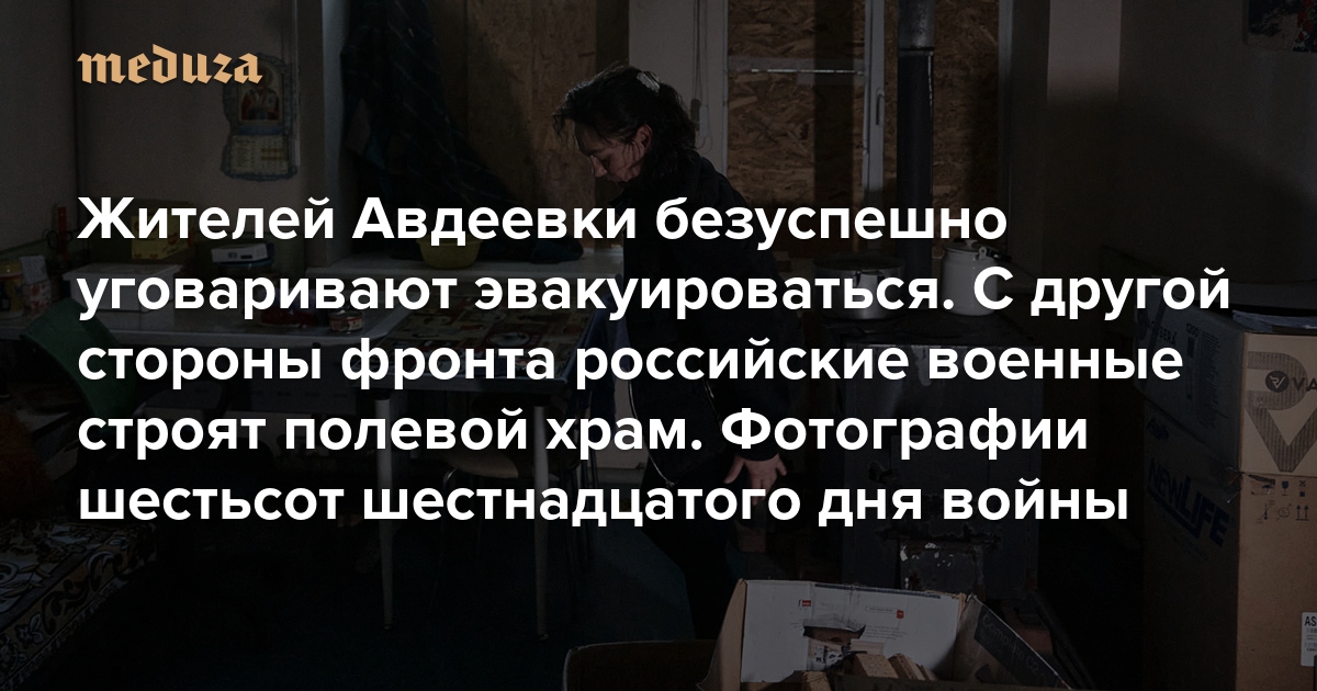 Жителей Авдеевки, остающихся под обстрелами, безуспешно уговаривают эвакуироваться. С другой стороны фронта российские военные строят полевой храм Шестьсот шестнадцатый день войны. Фотографии